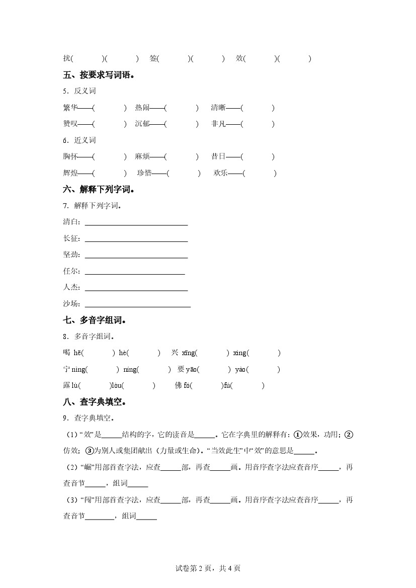 首页 > 全部 > 基础字词 > 统编版语文四年级上册第七单元字词专项练