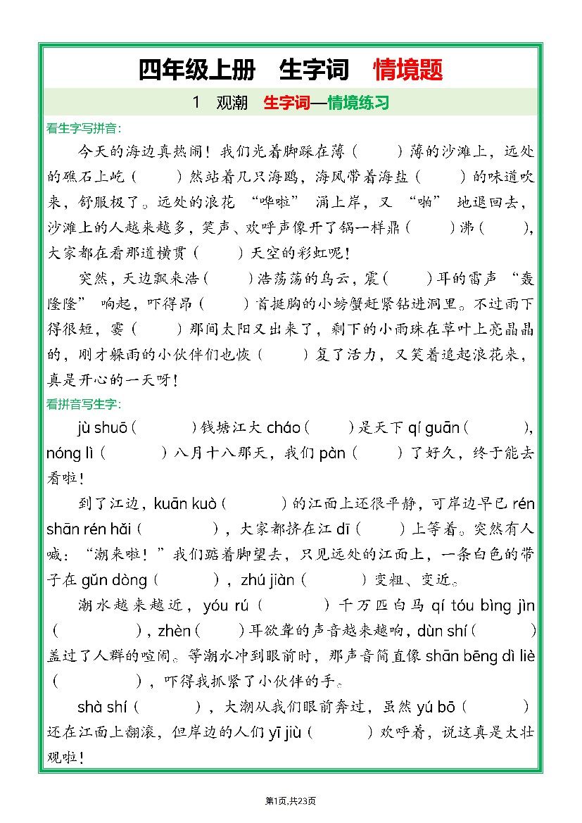 小学 四上生字词情境题(空白)