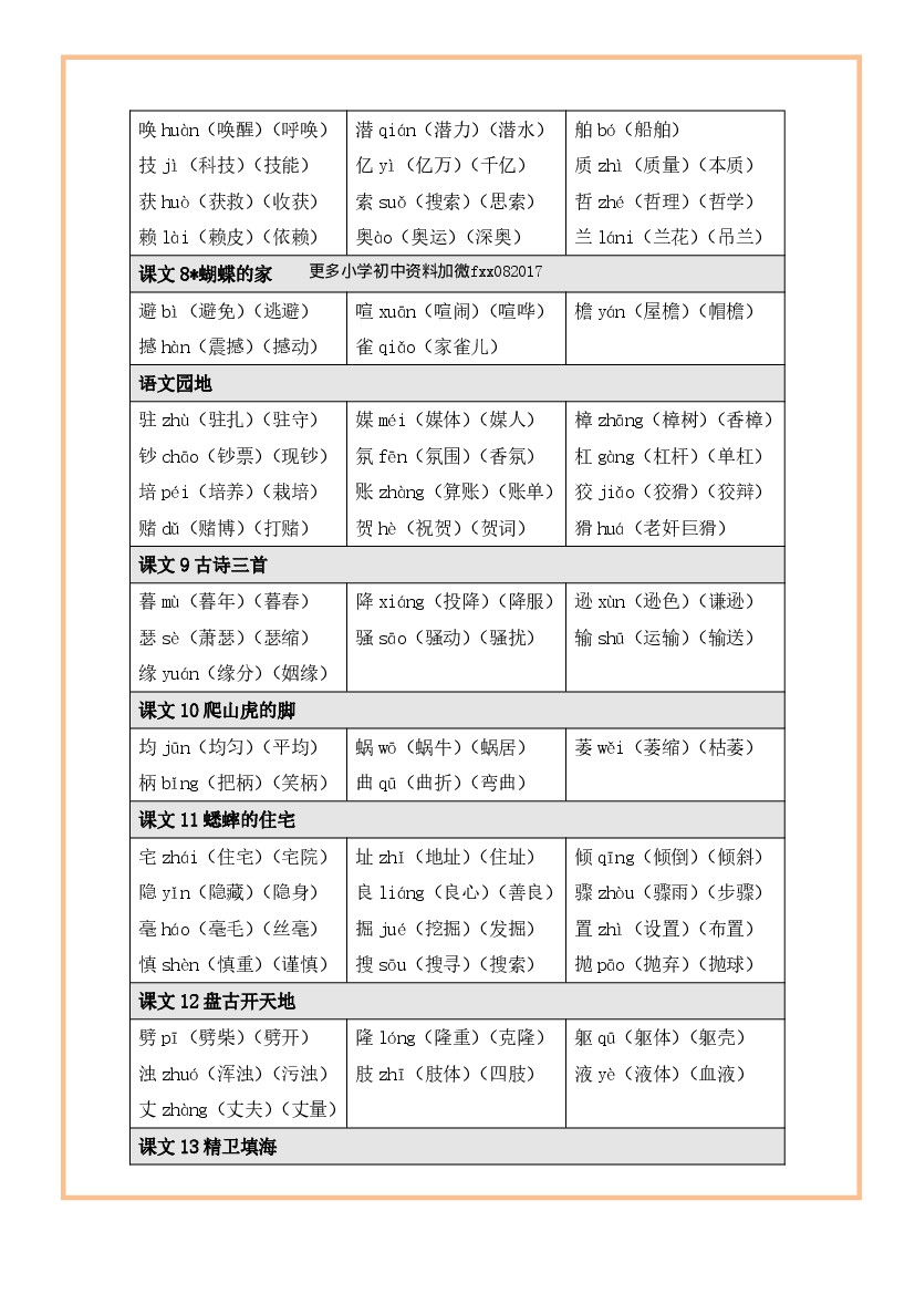 小学 四年级上册语文(识字表)注音、组词课课贴