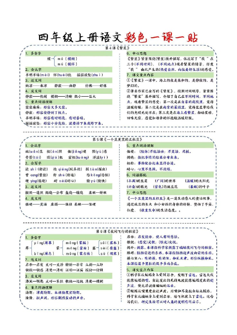 首页 > 全部 > 随堂课贴 > 四年级语文上册课课贴(彩色版)