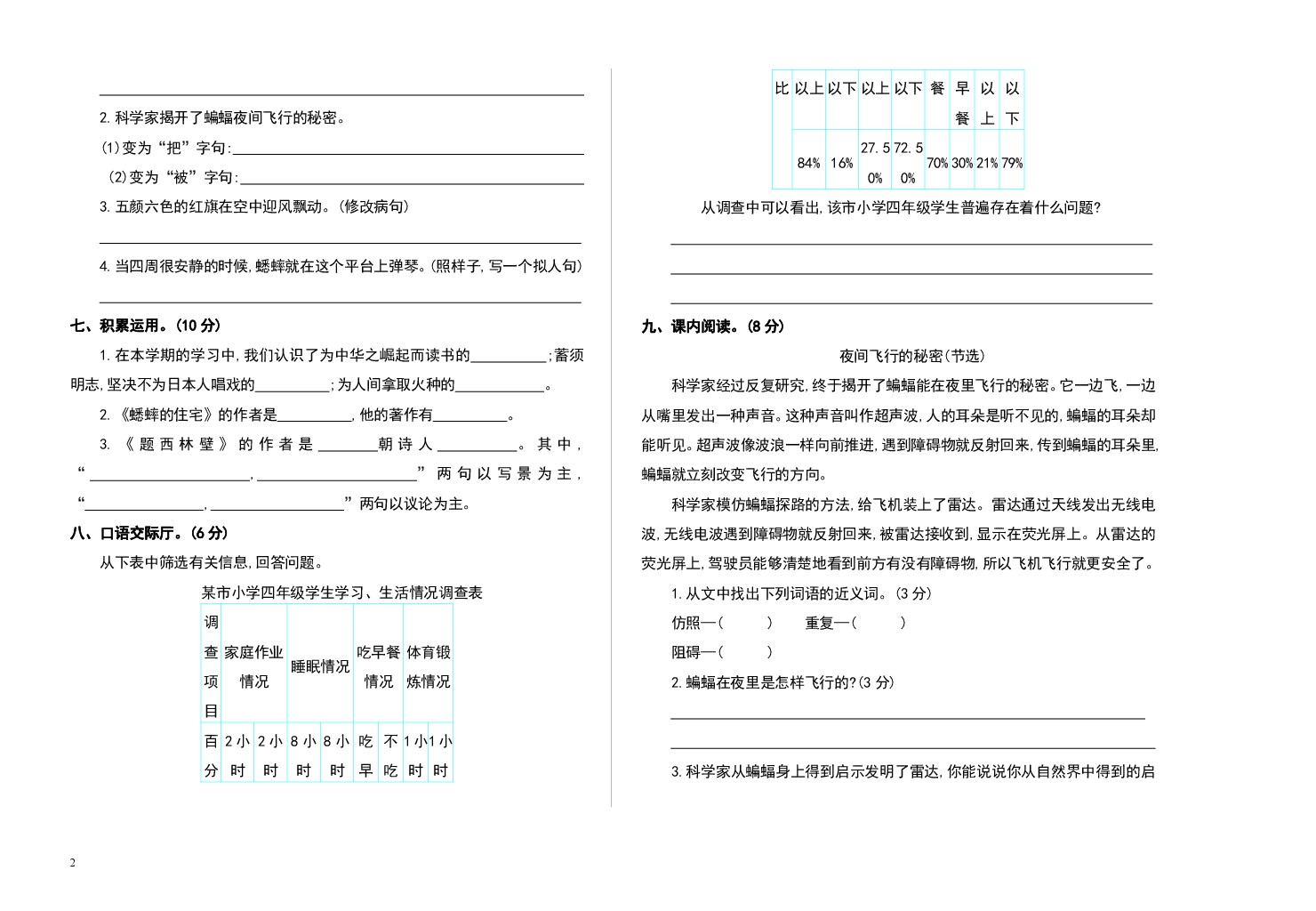 小学 四(上)语文期末真题测试卷