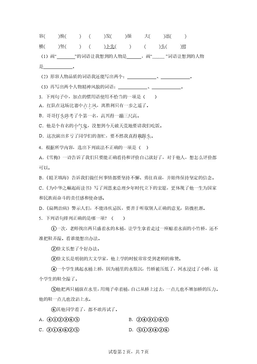 首页 > 全部 > 期末试卷 > 语文(提高卷02)四年级语文上学期期末全真模拟(统编版)