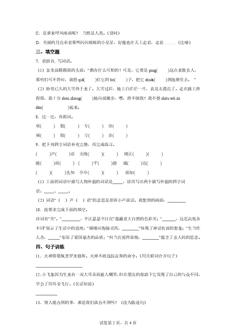 首页 > 全部 > 期末试卷 > 【语文】四年级上册期末测试A卷基础卷