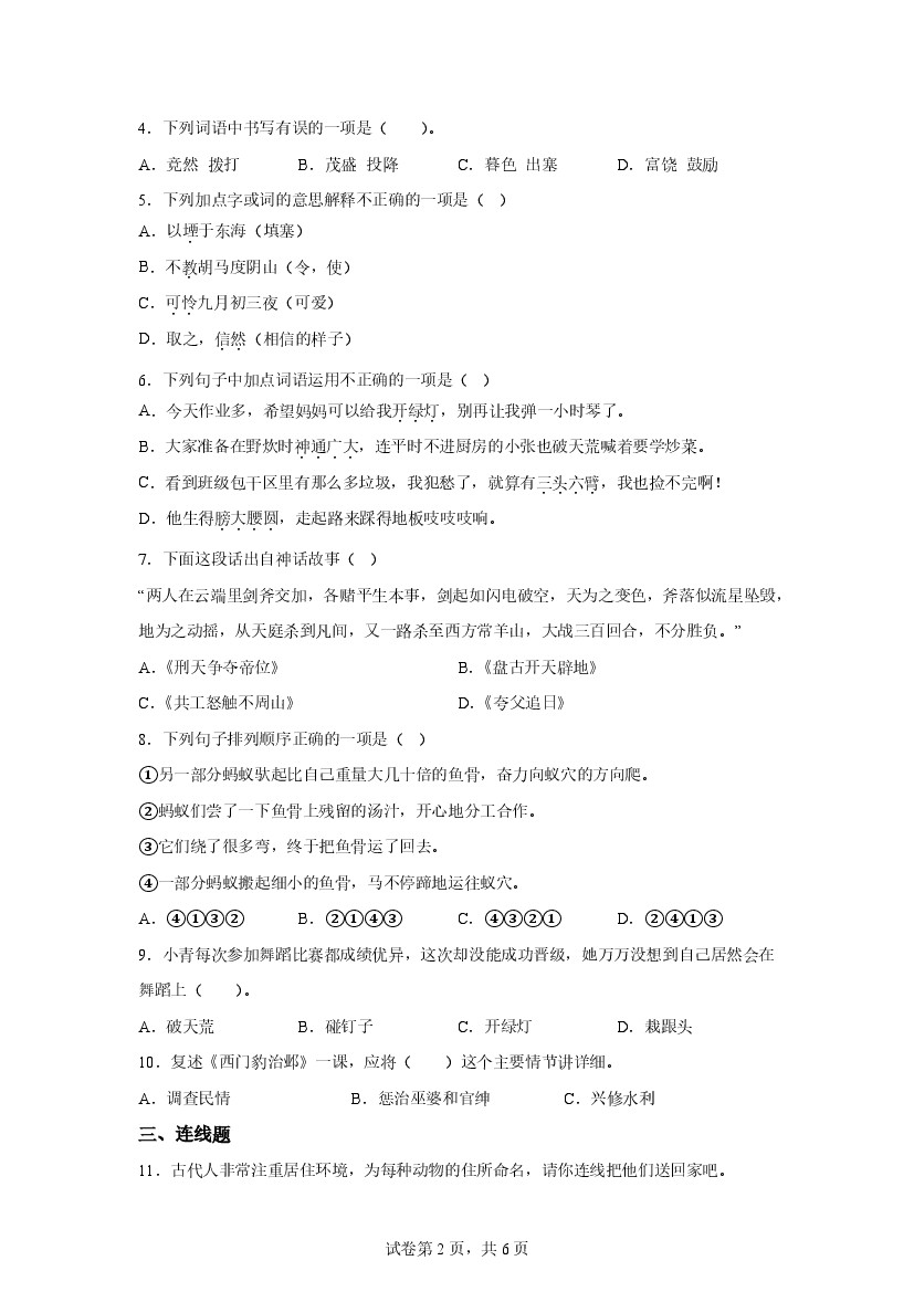 四年级上册期末测试B卷提升卷