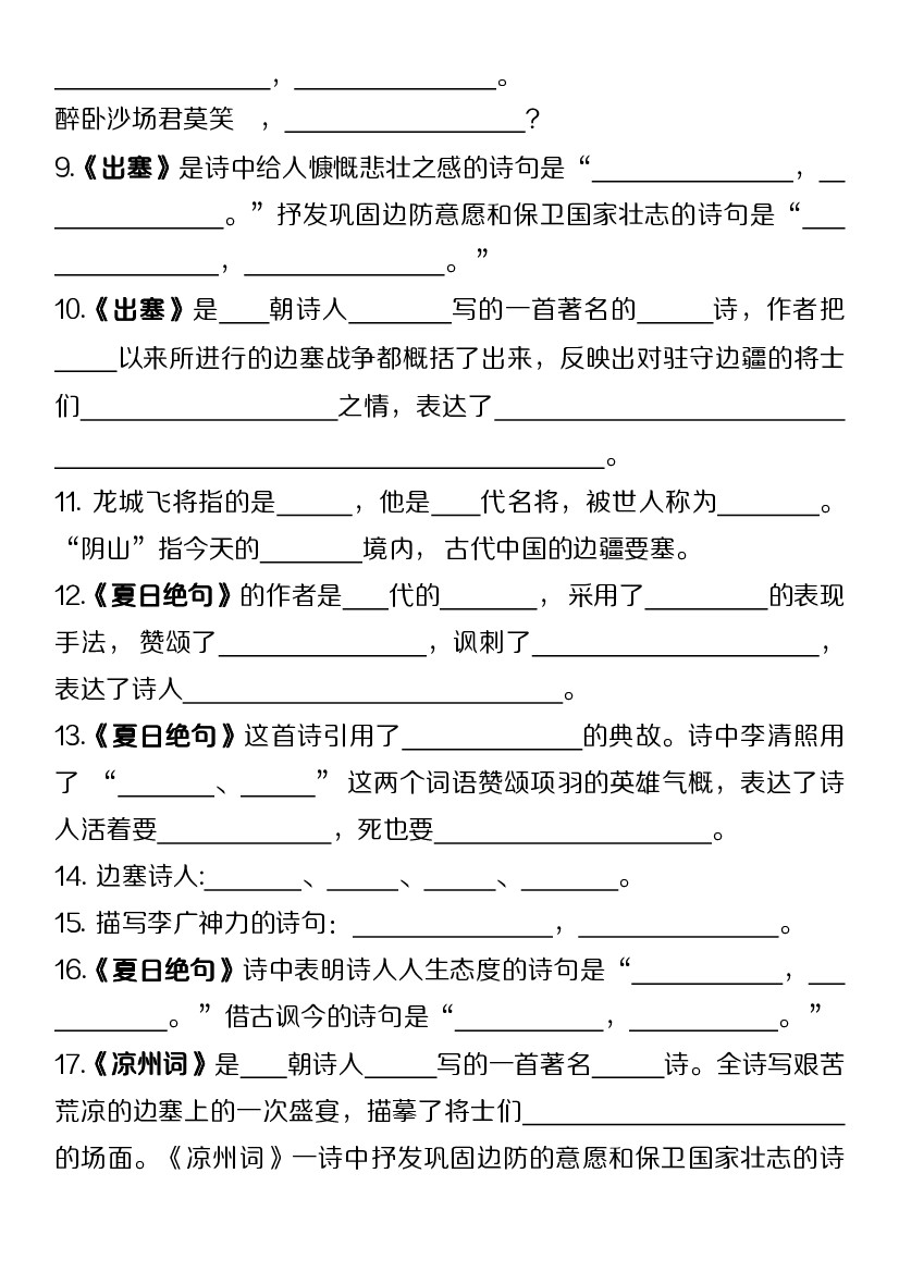 小学 【期末复习1-8单元古诗、名言、日积月累综合练习】四上语文