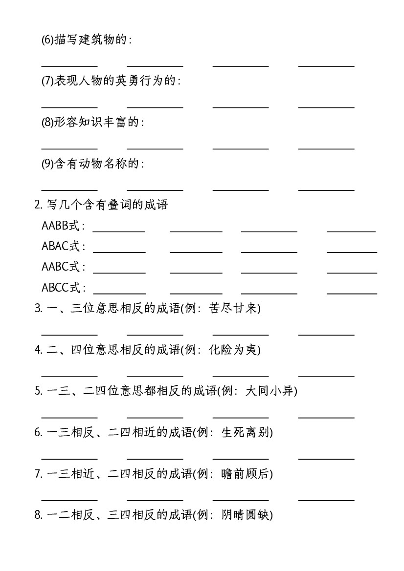 首页 > 全部 > 期末专项 > 【期末复习小测-成语填空专项】四上语文