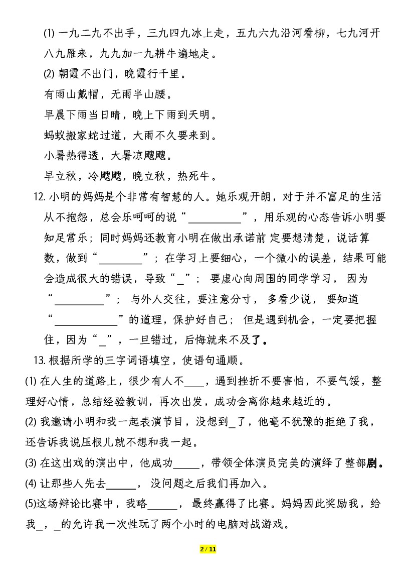 首页 > 全部 > 期末专项 > 【词语、古诗、句式积累】四年级上册语文期末复习小测-含答案