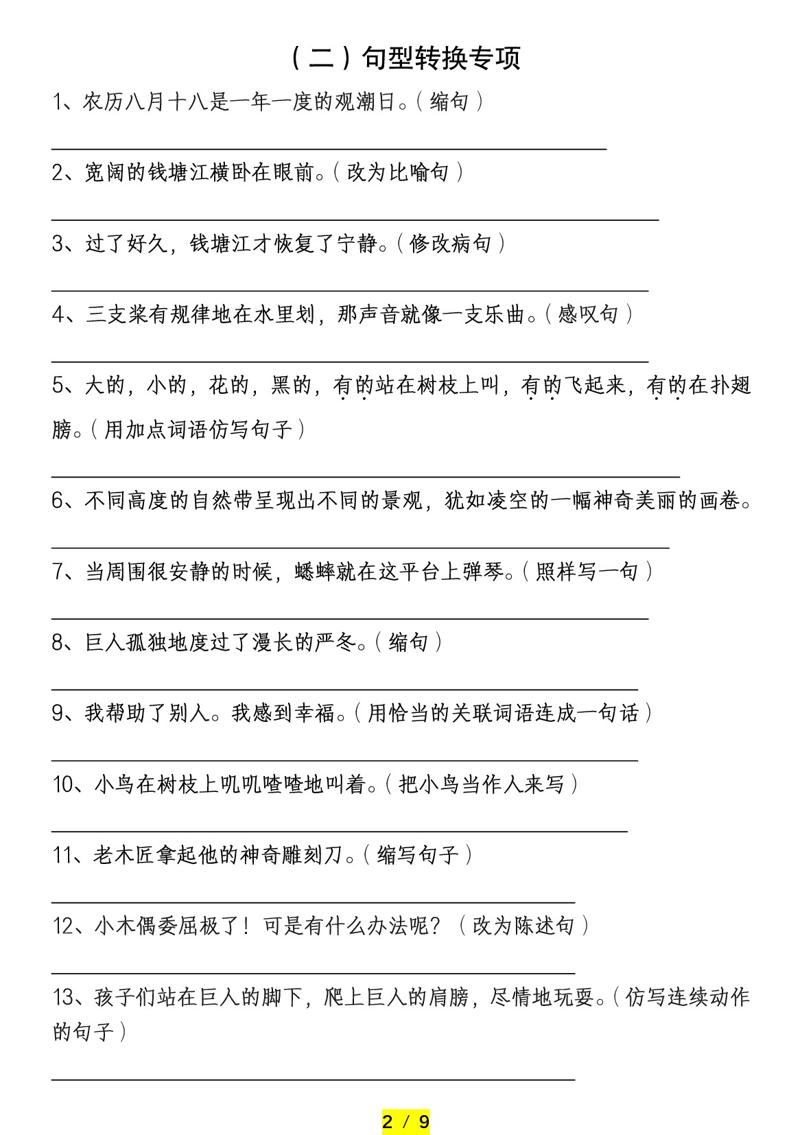 小学 【期末课内句子专项(附答案)】四上语文