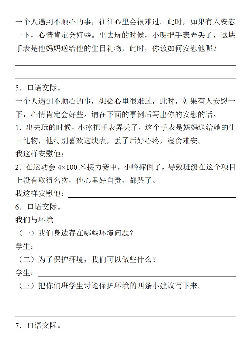 【期末口语交际专题训练】四上语文