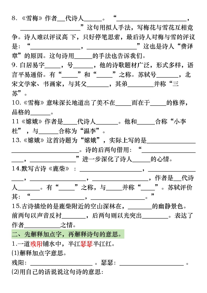 首页 > 全部 > 期中专项 > 四上语文期中必考古诗词专项练习