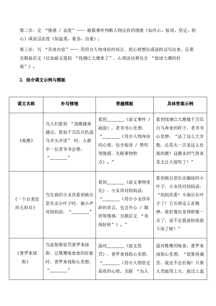 小学 四年级(上)语文 期中阅读复习(练联系上下文补写内容)