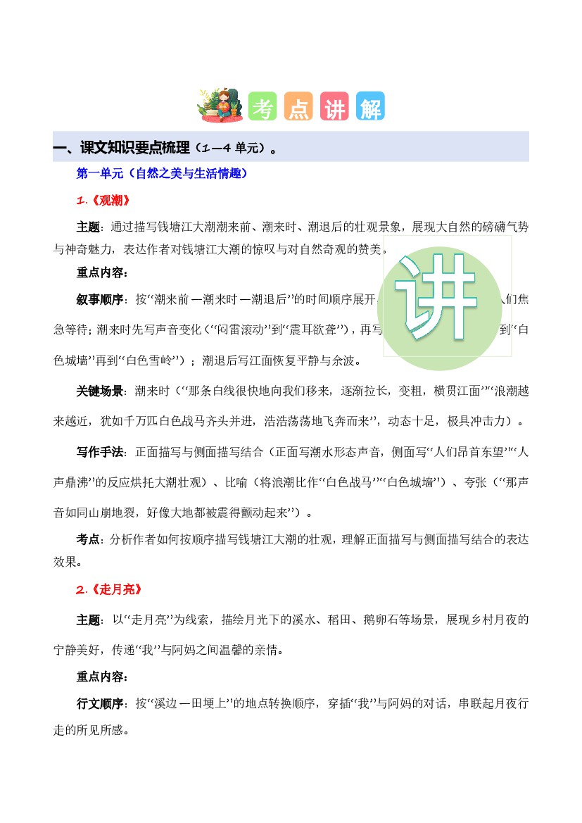 四年级(上)语文 期中专项训练专题6:课文梳理