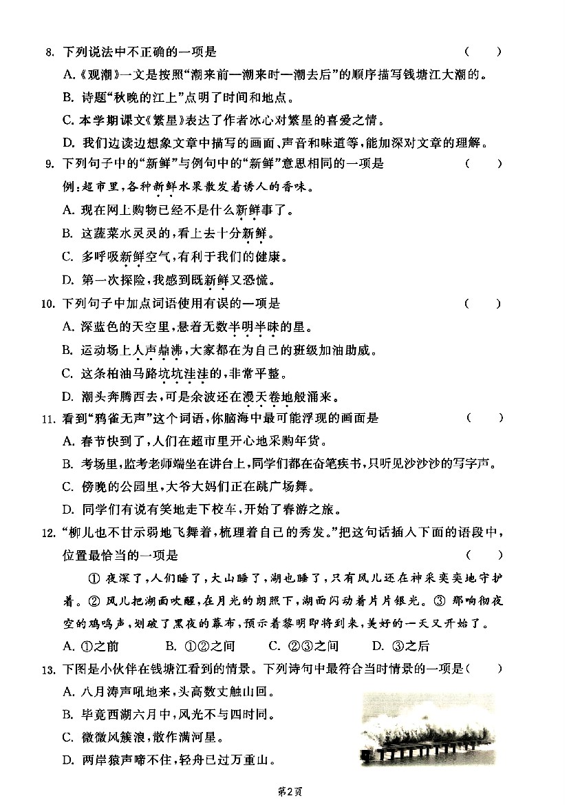 【25秋四上语文期中基础提优选择题集训专项(含答案20页)