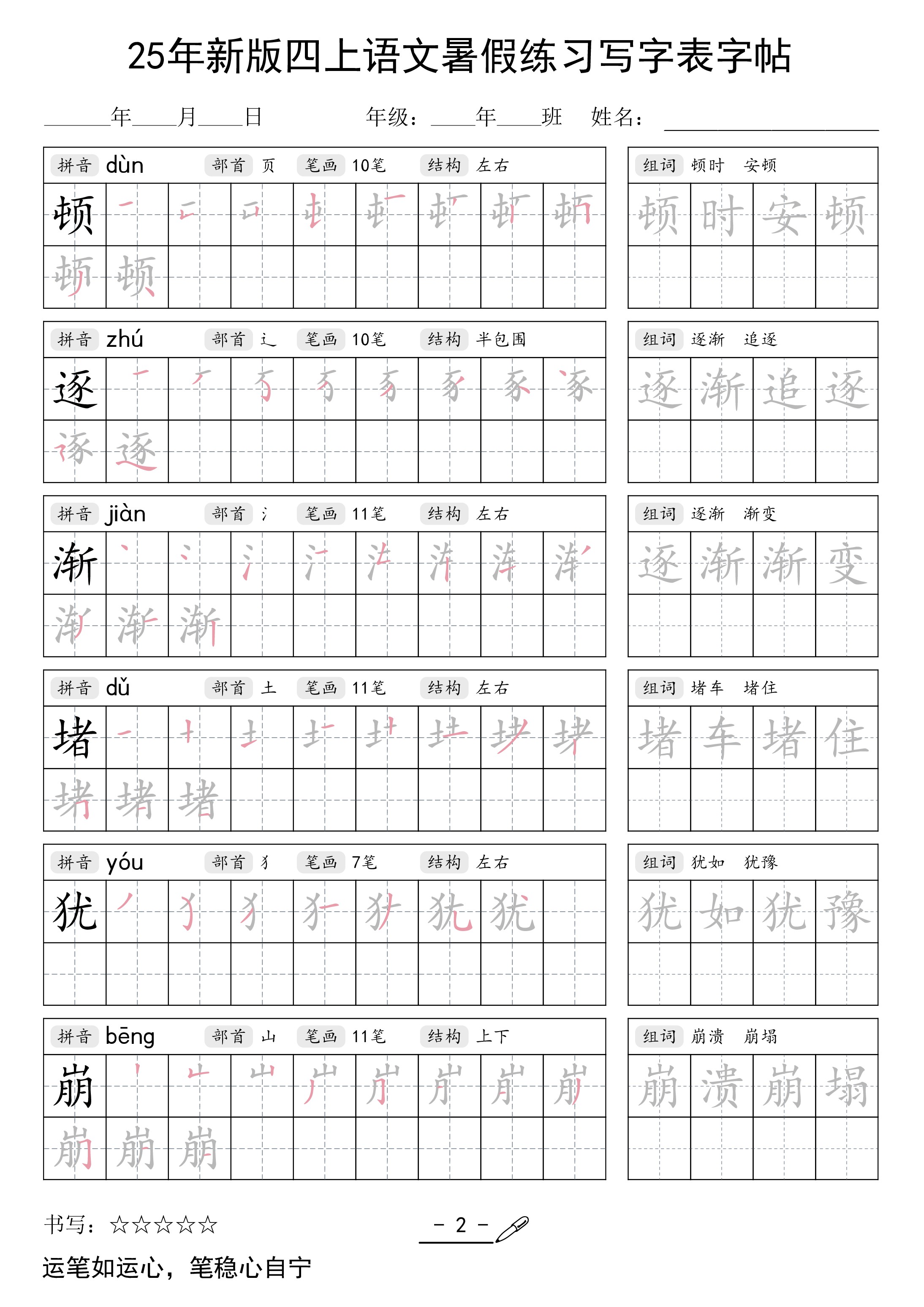 首页 > 全部 > 生字字帖 > 25年新版四上语文暑假练习写字表字帖42页