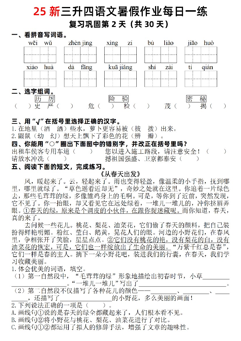 首页 > 全部 > 假期练习 > 三升四语文【25新-暑假作业每日一练30天】
