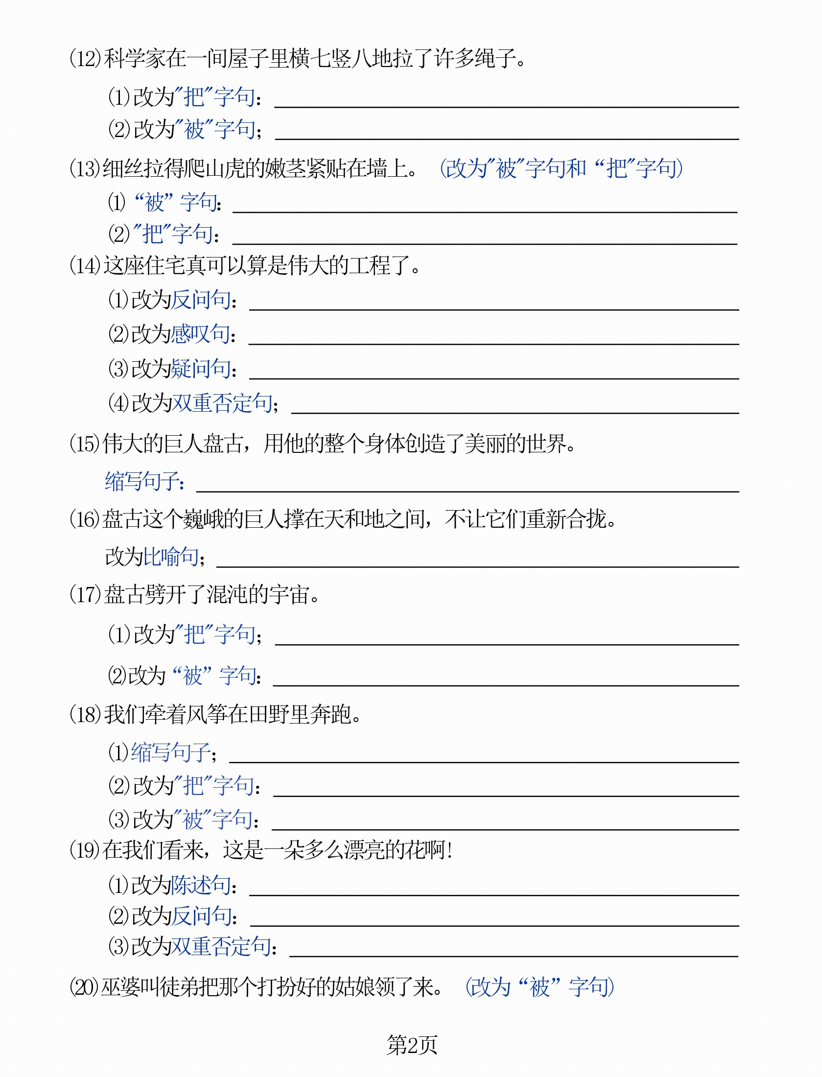 首页 > 全部 > 语句专项 > 四年级上册语文多种句式专项练习卷