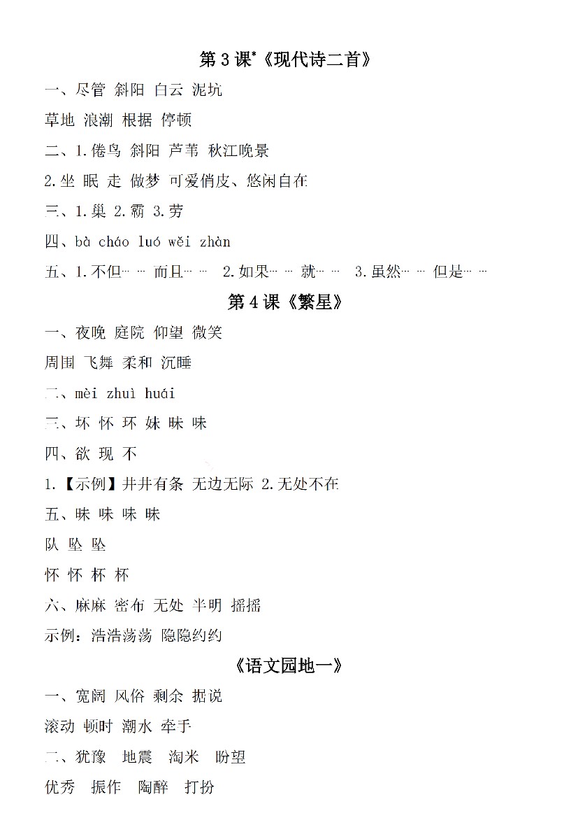 首页 > 全部 > 预习清单 > 【语文】四上语文1-2单元学习单(参考答案)