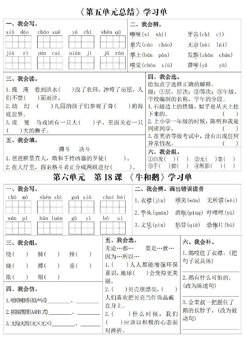 首页 > 全部 > 预习清单 > 四上丨语文 学习单5-6单元
