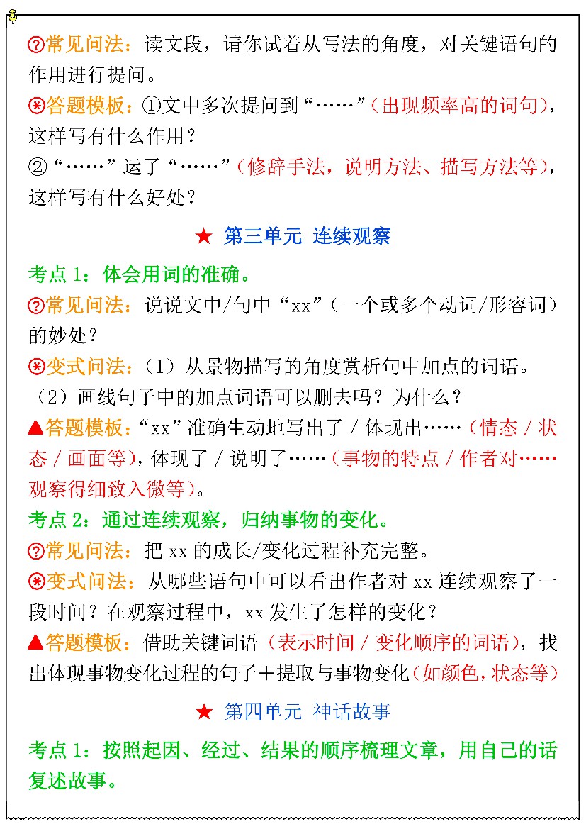 小学 【四上语文】阅读-【阅读理解考点(5页)】