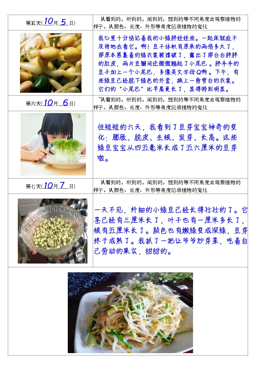 四上语文习作三:培育绿豆芽观察日记2《写观察日记》4页