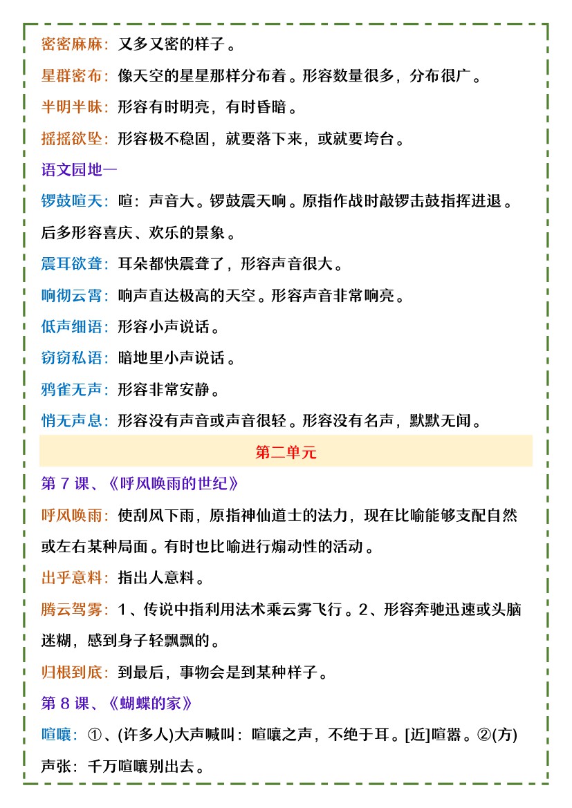 首页 > 全部 > 专项练习 > 【2025秋新版】四年级上册语文1-8单元课内词语及解释(1)