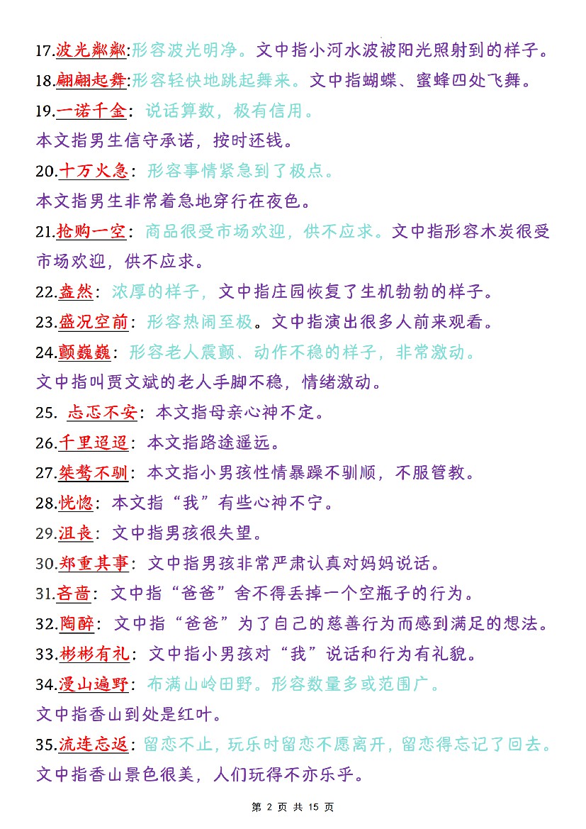 四年级上语文课内成语词语汇总清单(15页)