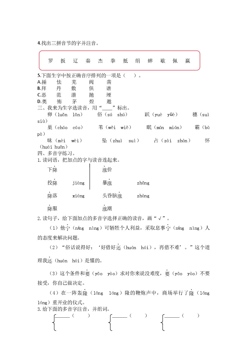 五四制语文4年级上专项练习