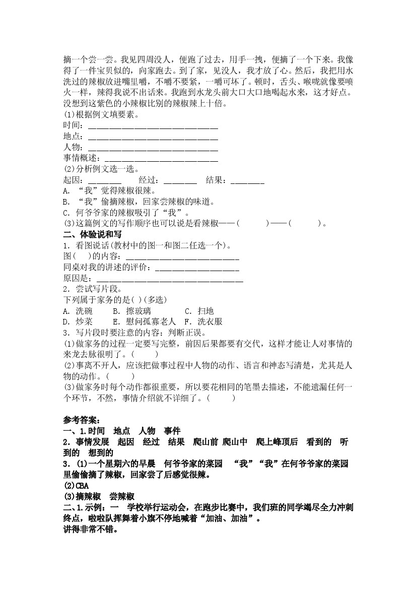 统编版语文四年级上册第五单元《习作例文》知识点+同步 练习