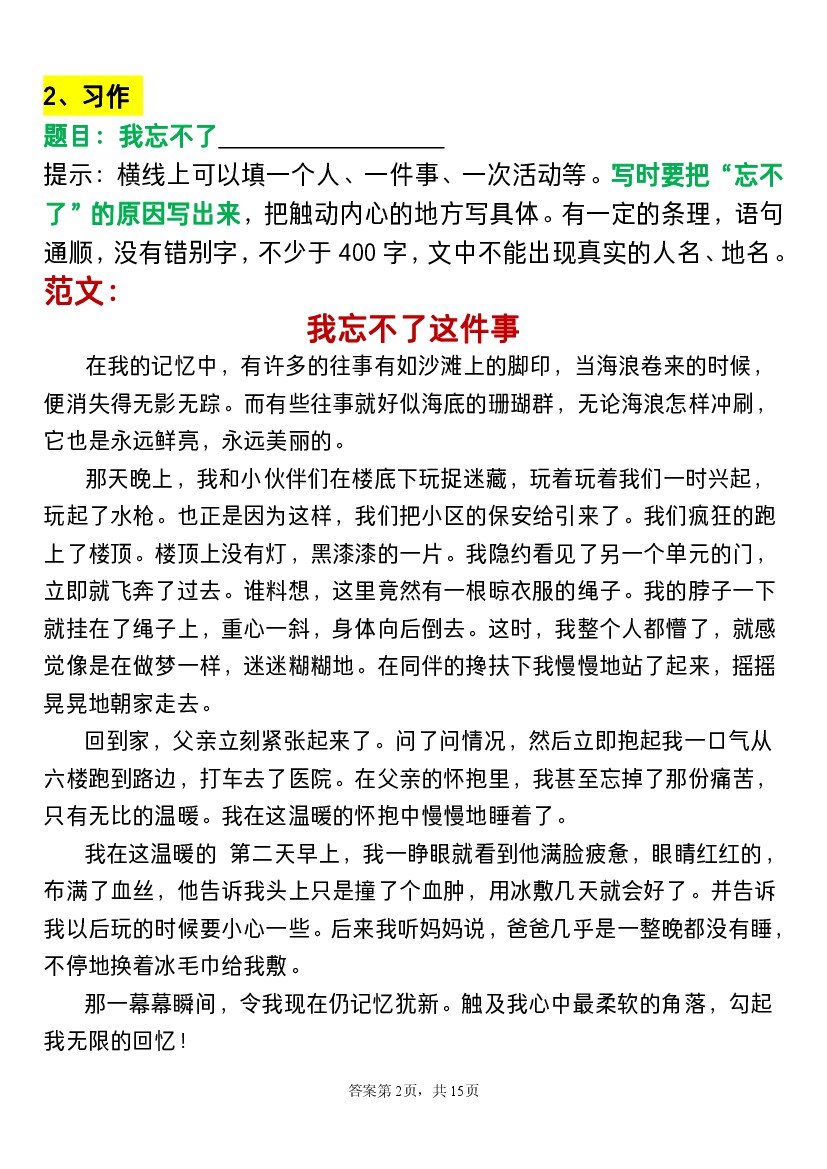 四年级上册语文期末备考押题作文10篇