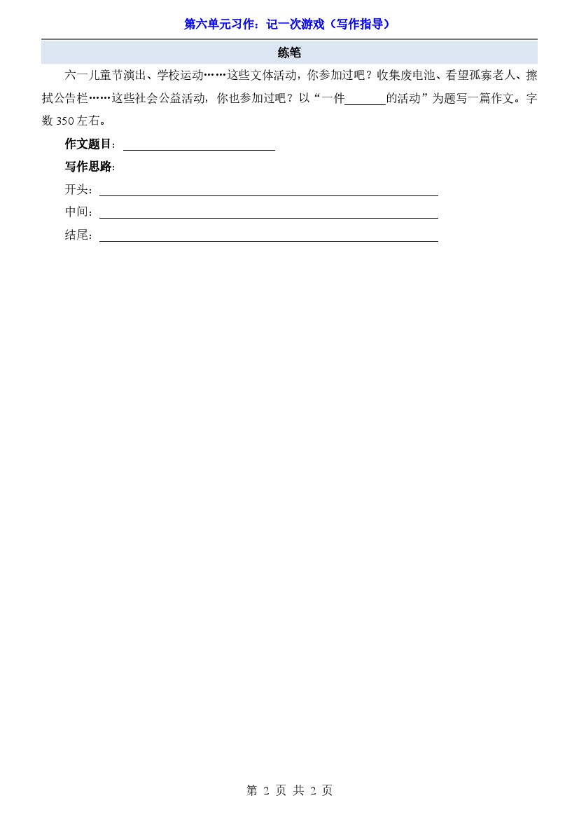 首页 > 全部 > 作文天地 > 25年秋【四上语文】第6单元习作《记一次游戏》(写作指导)