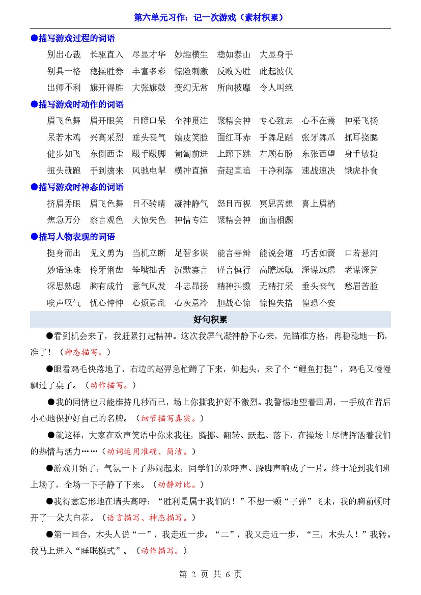 25年秋【四上语文】第6单元习作《记一次游戏》(素材积累)