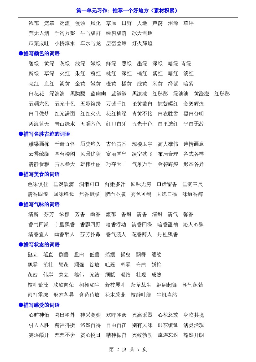 25年秋【四上语文】第1单元习作《推荐一个好地方》(素材积累)