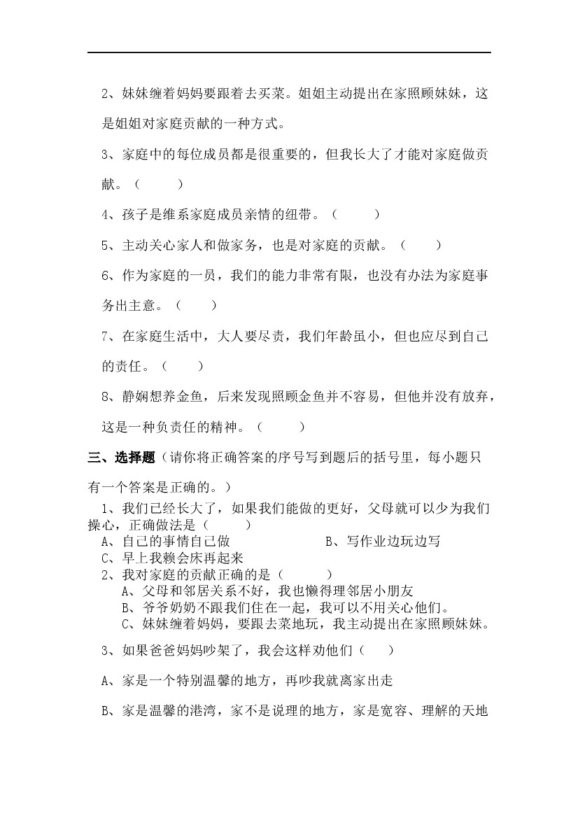 首页 > 全部 > 课时练习 > 四上丨道法 第6课 我的家庭贡献与责任(部编版)