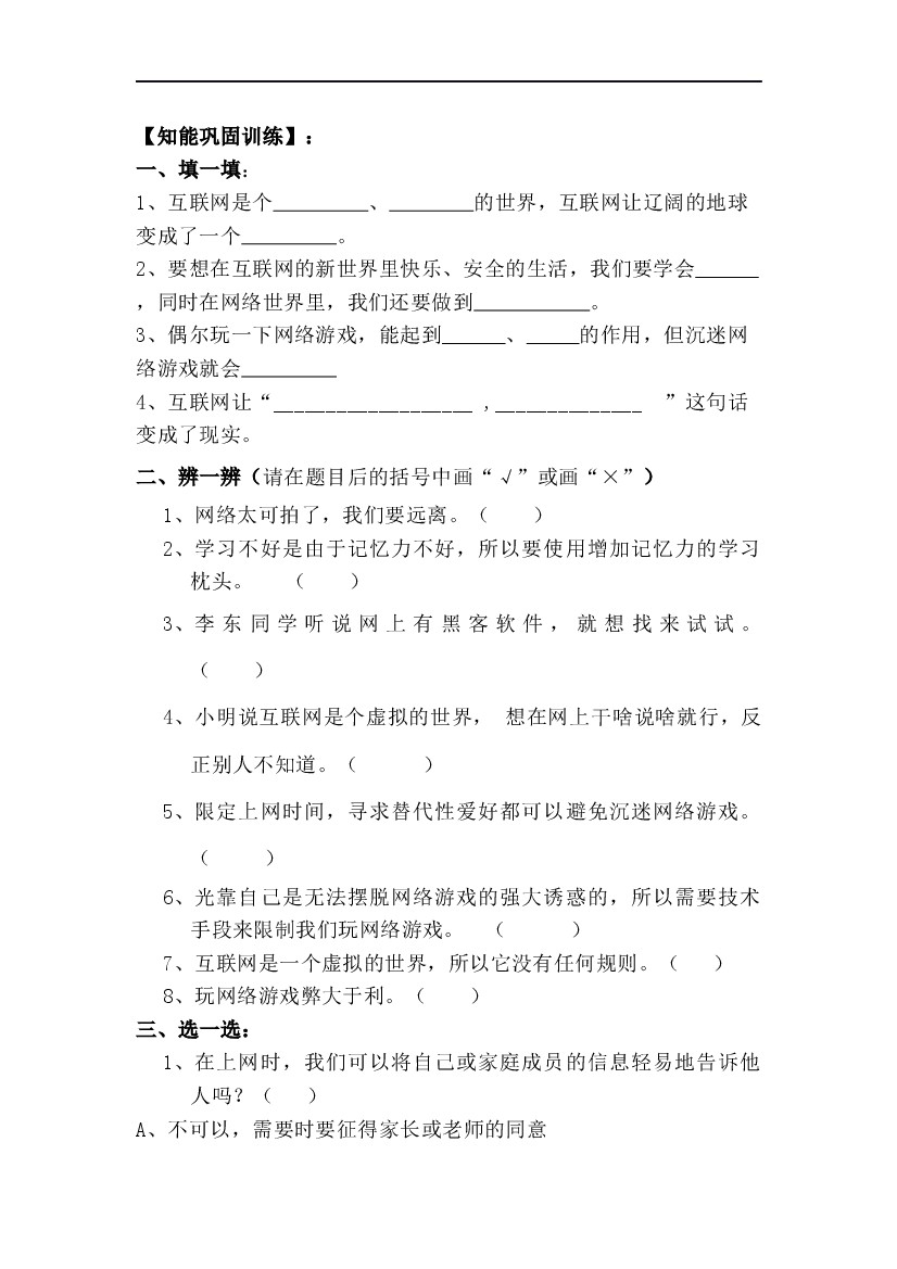 首页 > 全部 > 课时练习 > 四上丨道法 第8课 网络新世界(部编版)