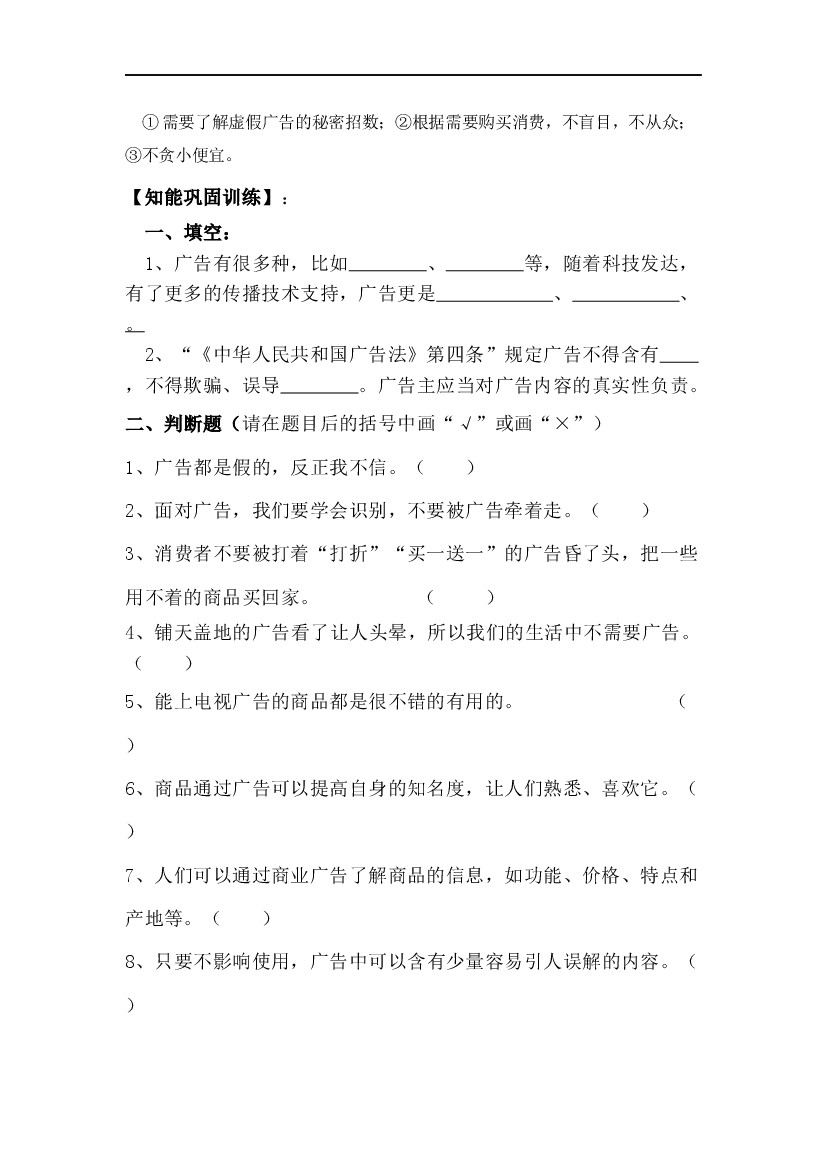 首页 > 全部 > 课时练习 > 四上丨道法 第9课 正确认识广告(部编版)