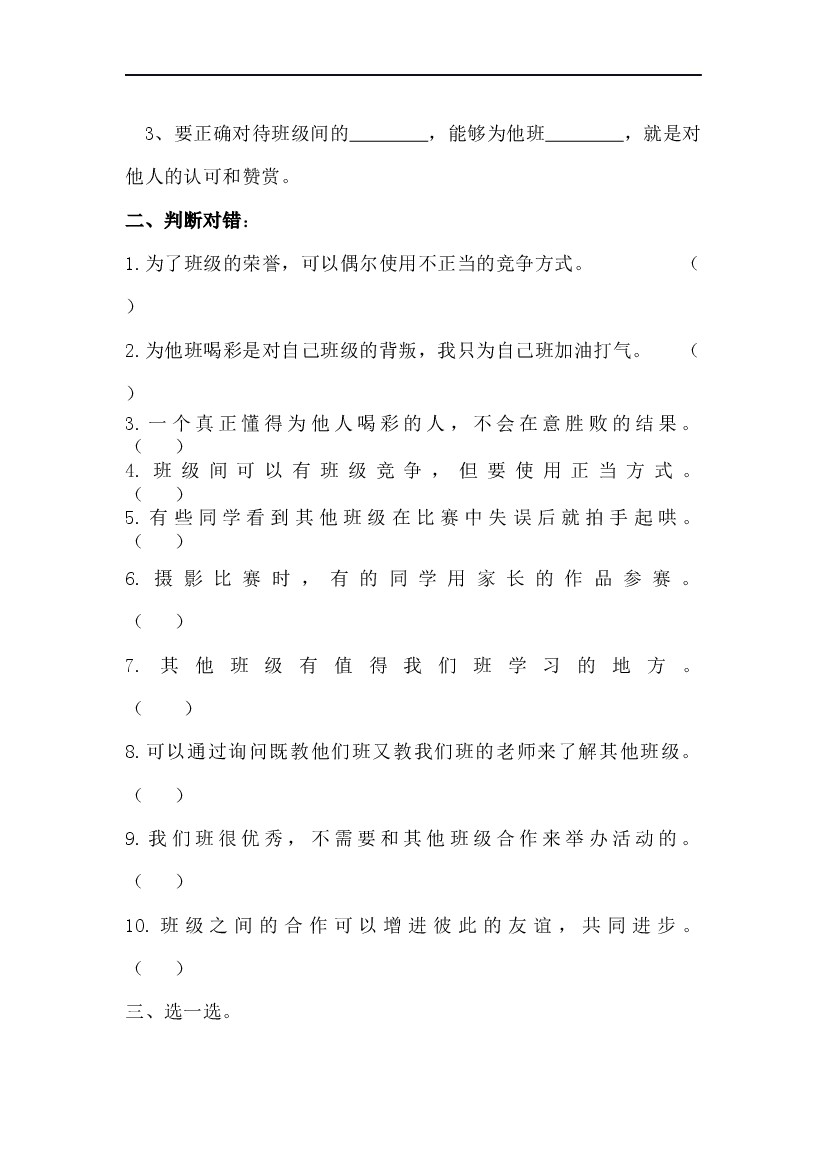 首页 > 全部 > 课时练习 > 四上丨道法 第3课 我们班 他们班(部编版)