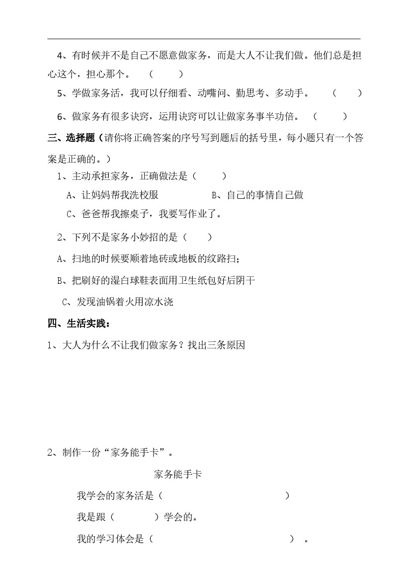 小学 四(上)道德与法治5课同步练习