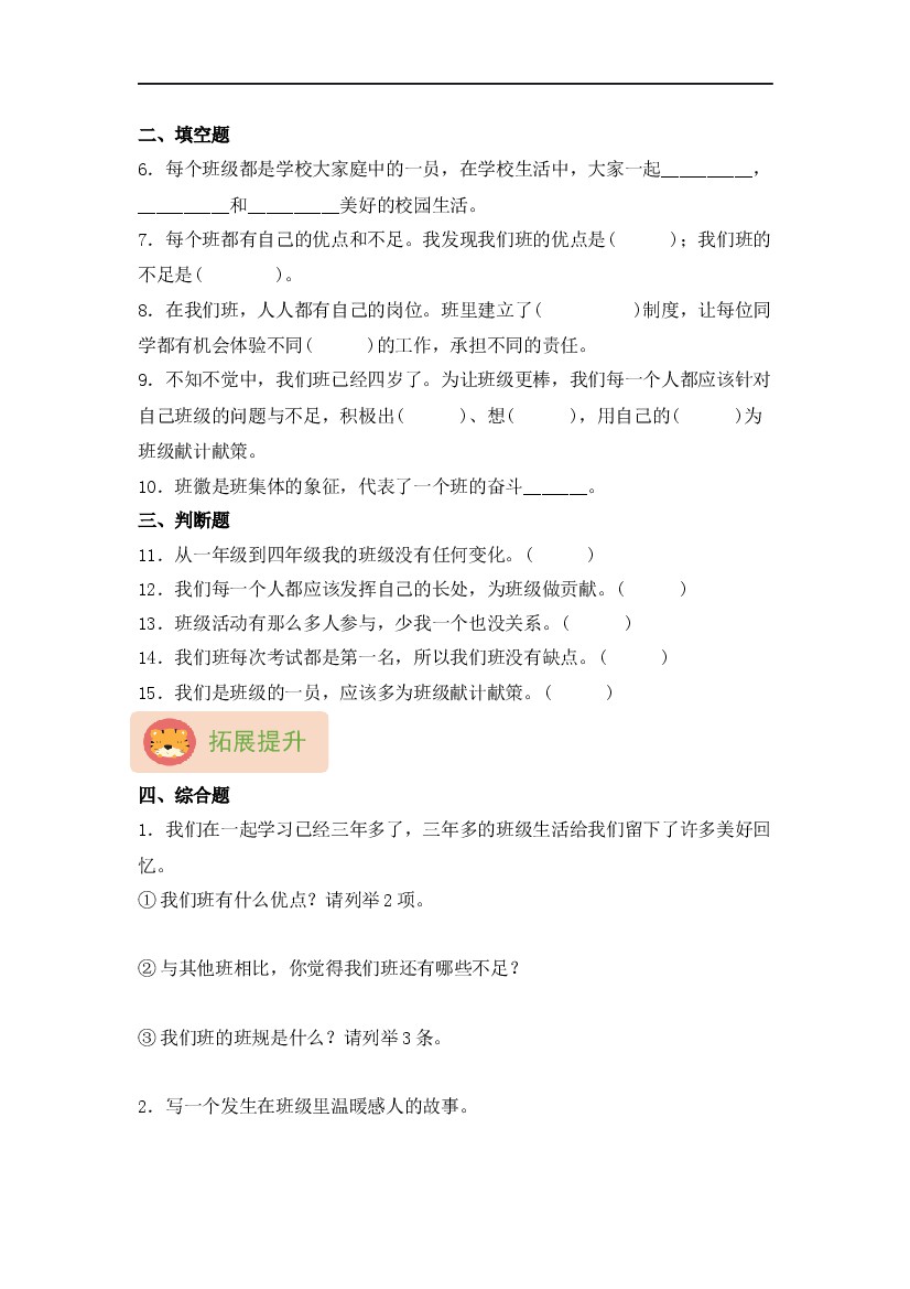 首页 > 全部 > 课时练习 > 【四上道法】课时练习