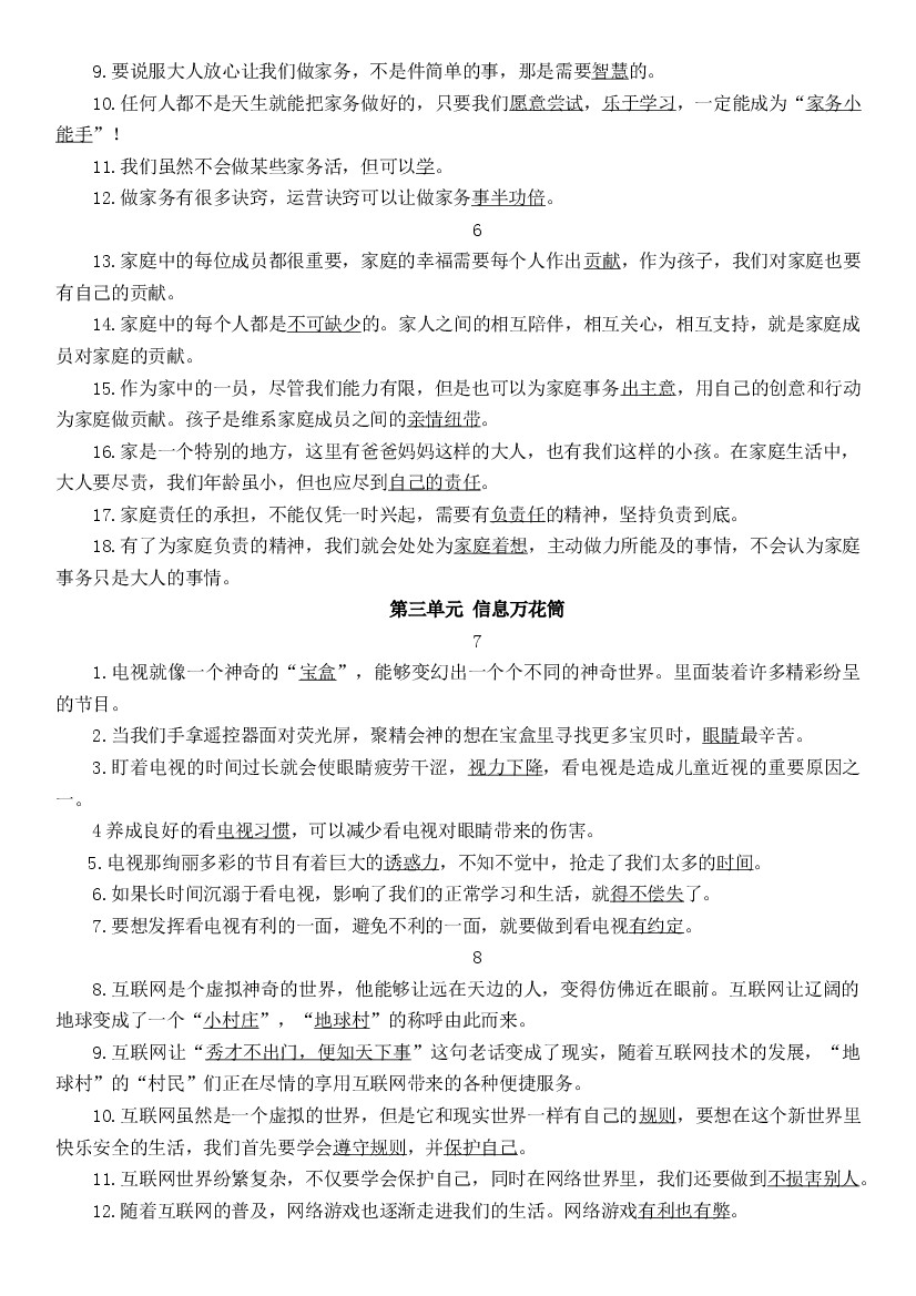 【道德与法治知识点】部编版道德与法治四年级上册总复习知识点