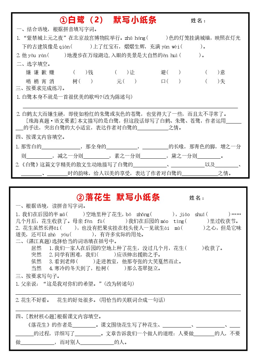 五上语文默写小纸条(修改版)