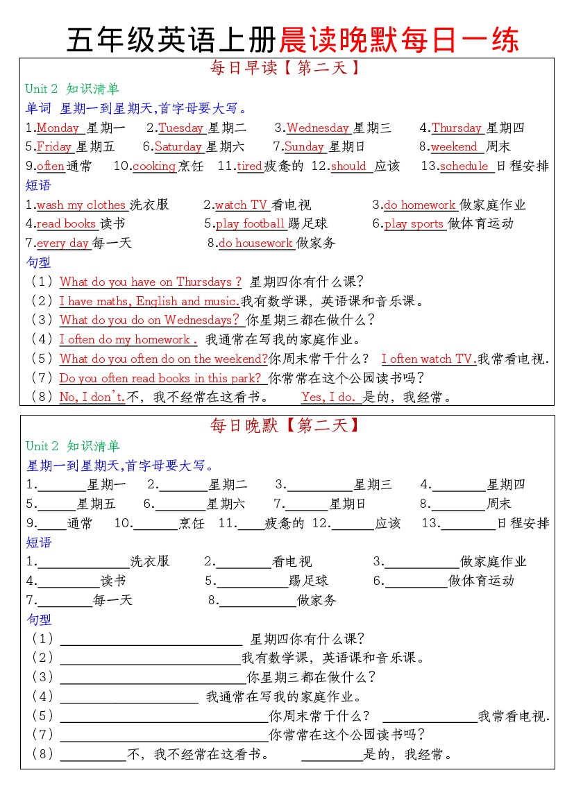 首页 > 全部 > 晨读晚默 > 五年级英语上册晨读晚默每日一练