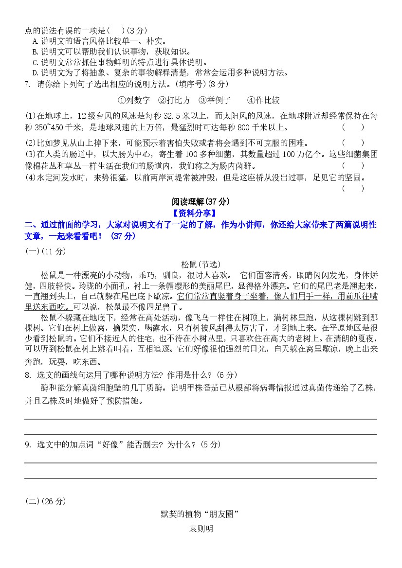 首页 > 全部 > 单元测试 > 五上语文第五单元情景卷+答案8页