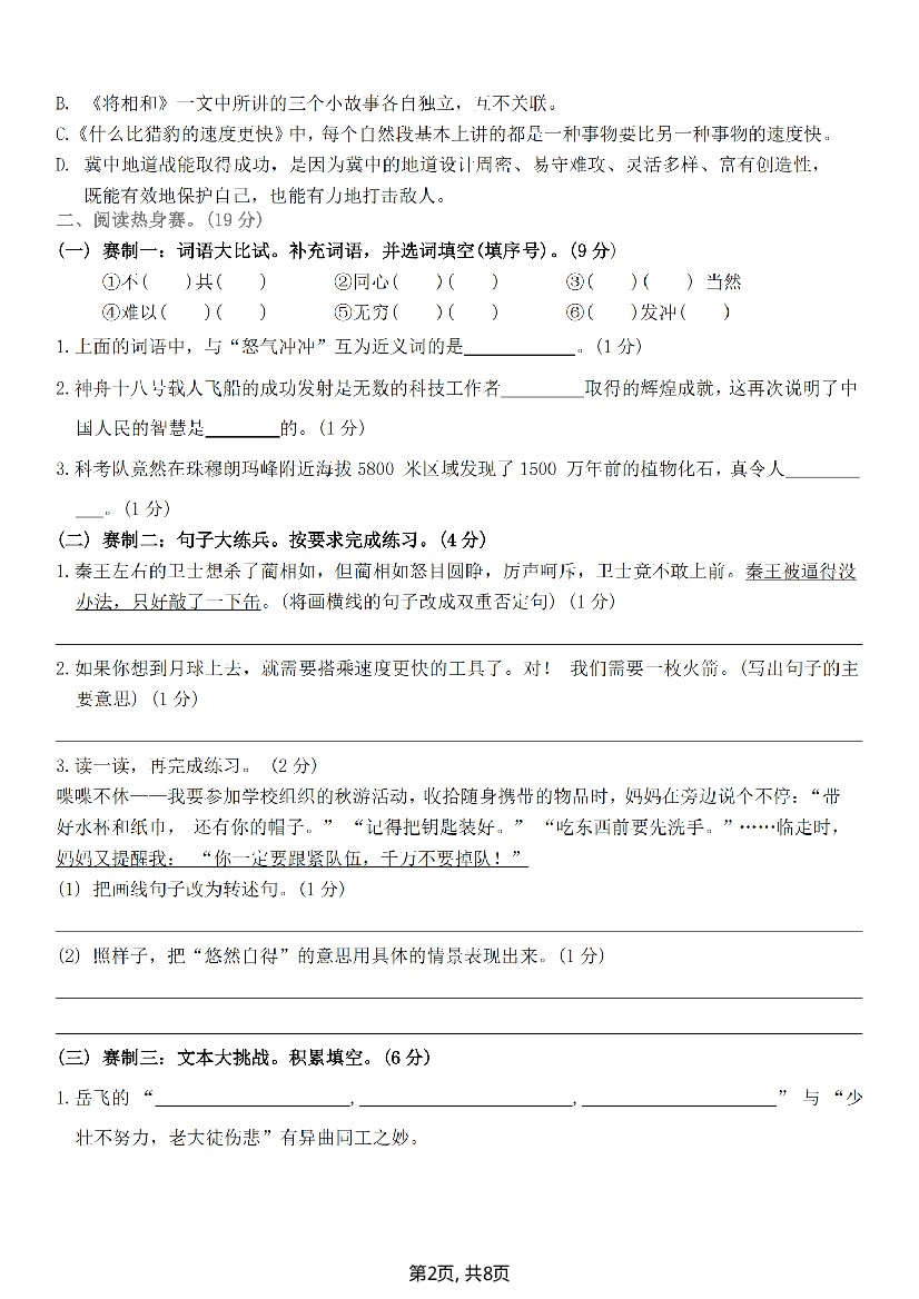 首页 > 全部 > 单元测试 > 五年级(上)语文第二单元情景测试卷