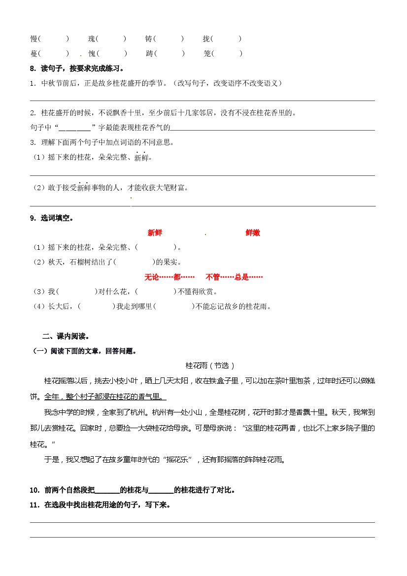 首页 > 全部 > 课时练习 > 第03课《桂花雨》精品配套练习(基础+阅读)-部编版五年级上册