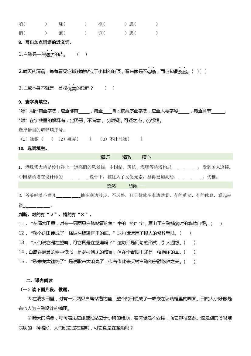 首页 > 全部 > 课时练习 > 第01课《白鹭》精品配套练习(基础+阅读)-部编版五年级上册