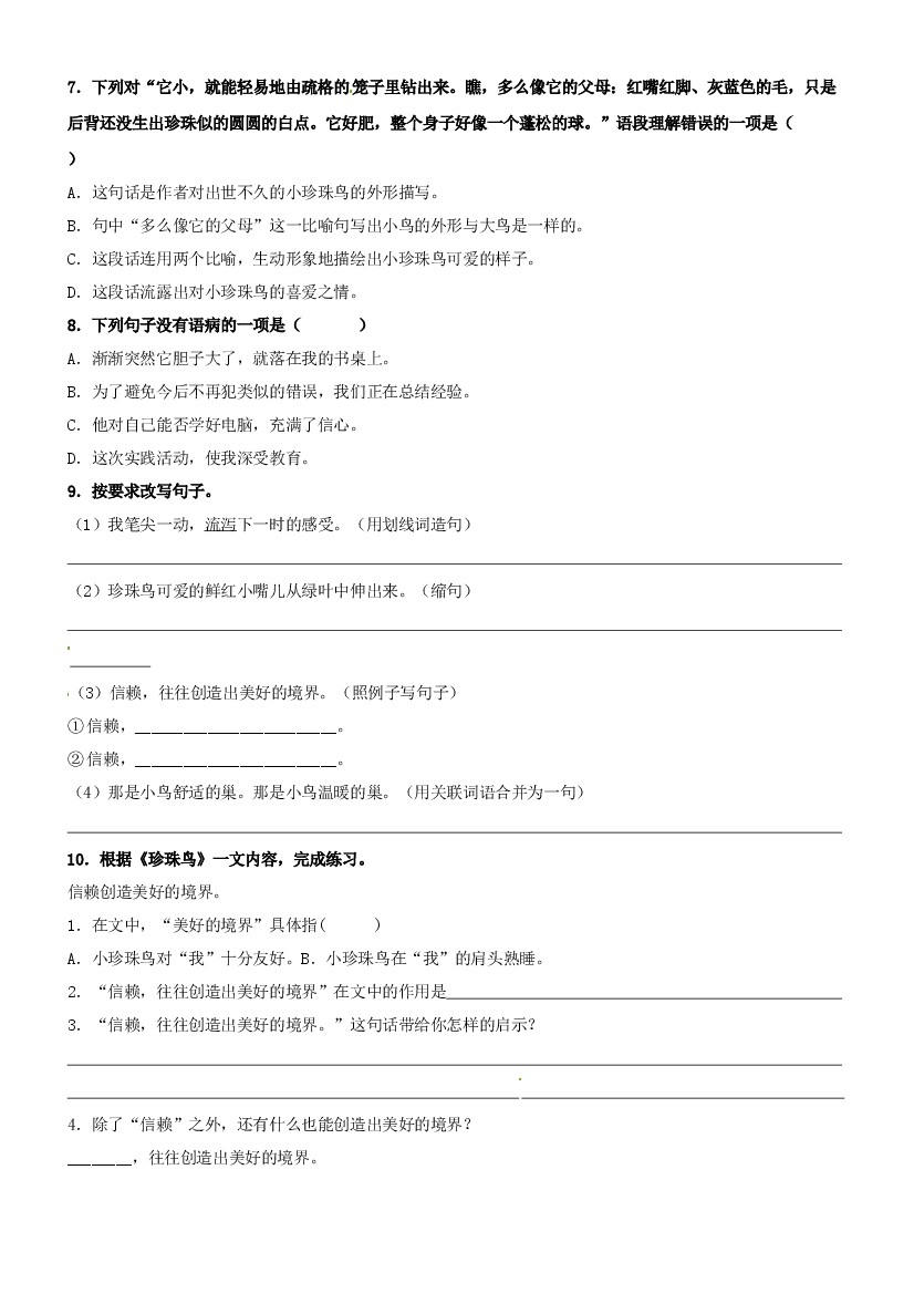 首页 > 全部 > 课时练习 > 第04课《珍珠鸟》精品配套练习(基础+阅读)-部编版五年级上册