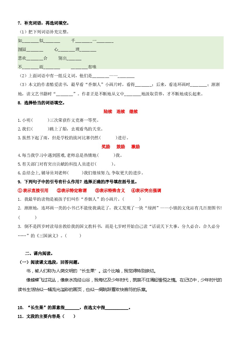首页 > 全部 > 课时练习 > 第27课《我的长生果》精品配套练习(基础+阅读)-部编版五年级上册