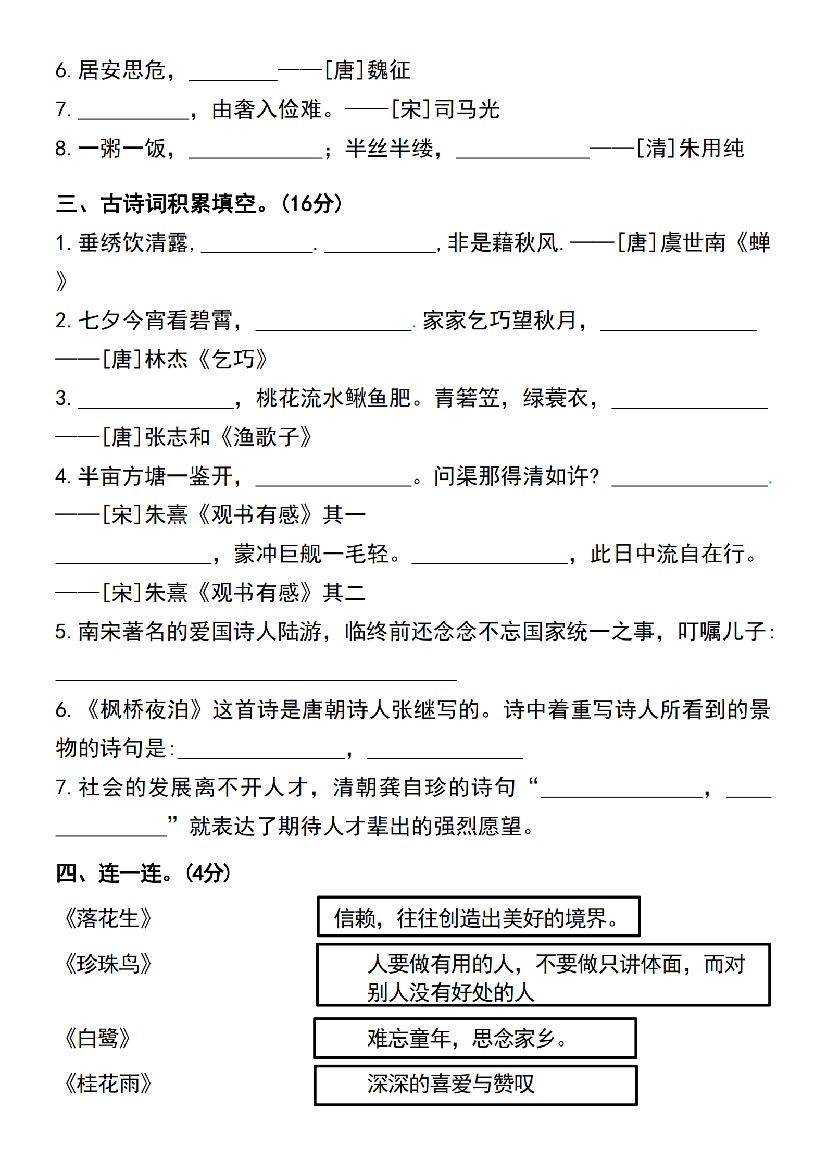 小学 五年级(上)语文 积累运用与口语交际专项测试卷