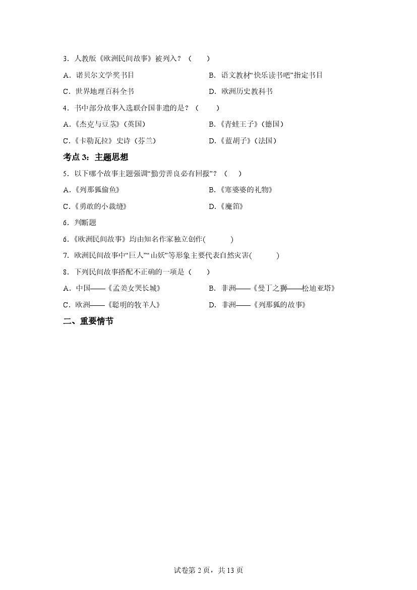 统编版语文五年级上册整本书阅读:欧洲民间故事