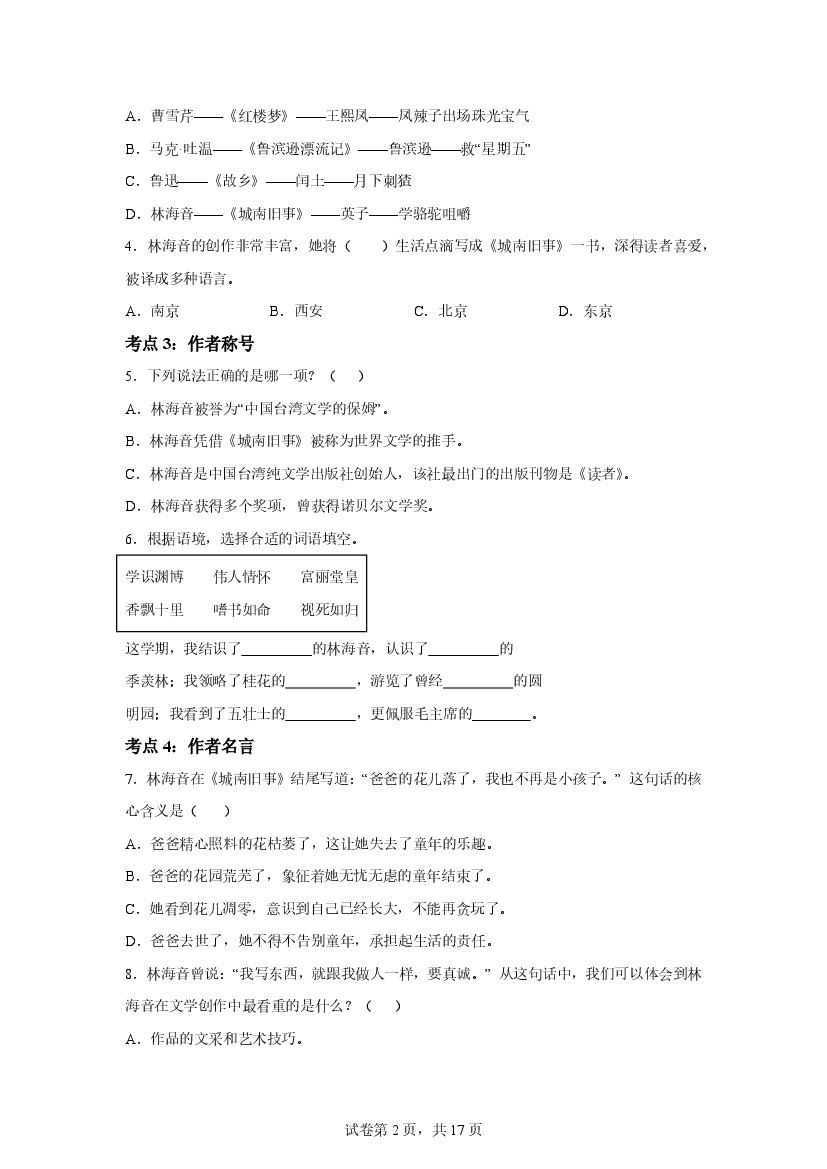 统编版语文五年级上册整本书阅读:城南旧事